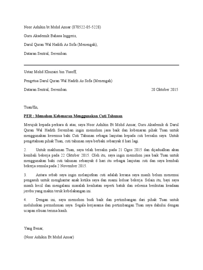 Surat Permohonan Cuti Awal Surat Rasmi V