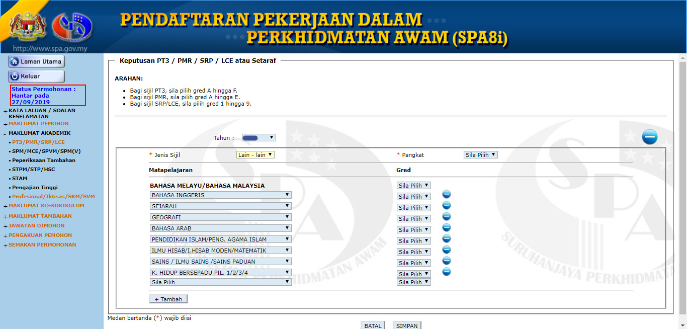 Semakan Status Permohonan Spa Keputusan Peperiksaan Temuduga