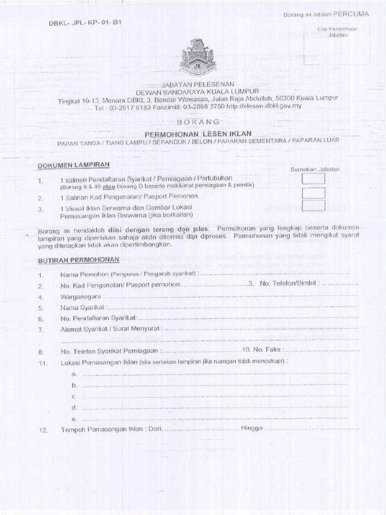 Borang Permohonan Lesen Perniagaan Kuala Lumpur