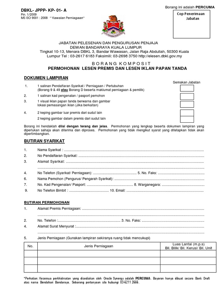 Permohonan Lesen Premis Dan Lesen Iklan Papan Tanda Borang Komposit