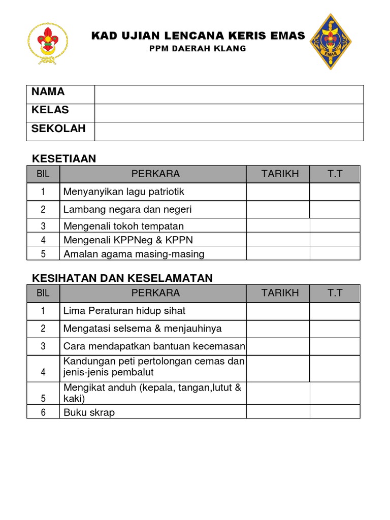 Jadual Skema Baru Pengujian Untuk Guru Penasihat Pengakap Kanak Kanak