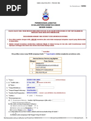 Permohonan Jawatan Di Dalam Perkhidmatan Awam Negeri Sabah Gov My Spans Images Borang Spa 1 Pindaan 1 98 Mempunyai Kelayakan Seperti Yang Dikehendaki Di Dalam Iklan