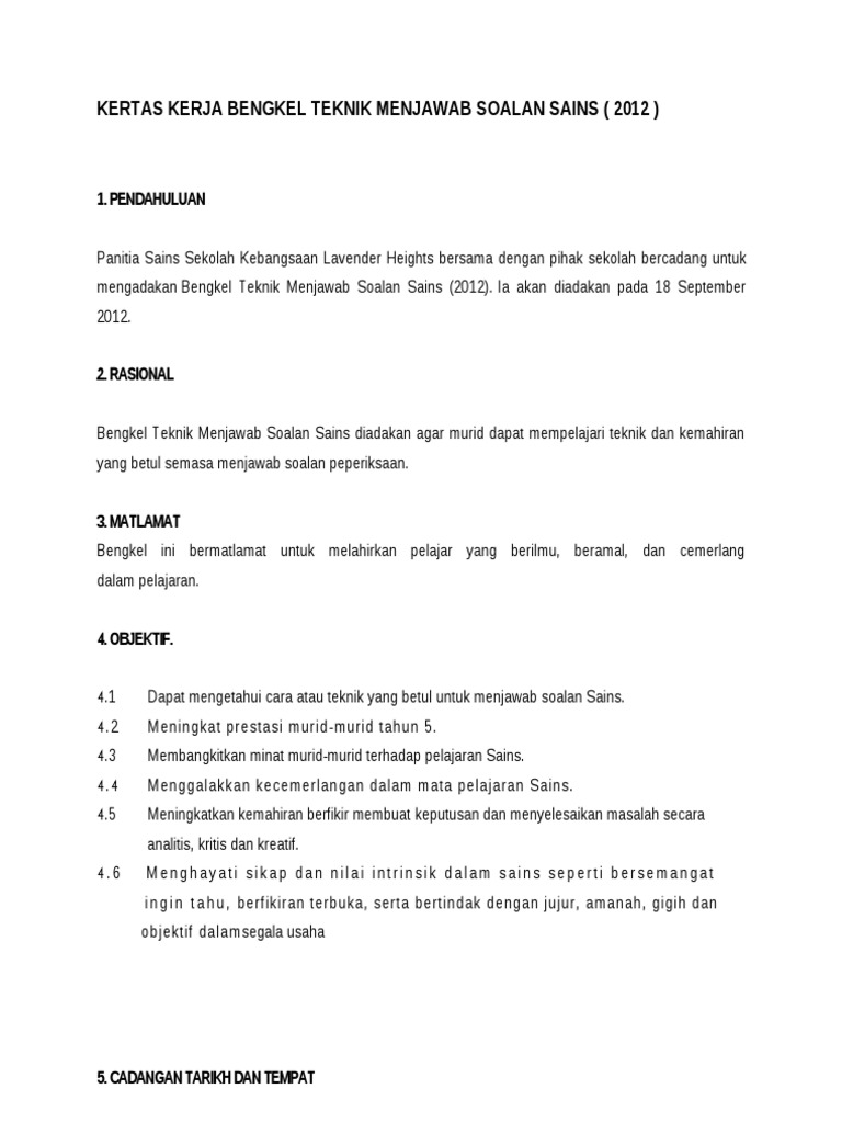 Kertas Kerja Bengkel Teknik Menjawab Soalan Sains
