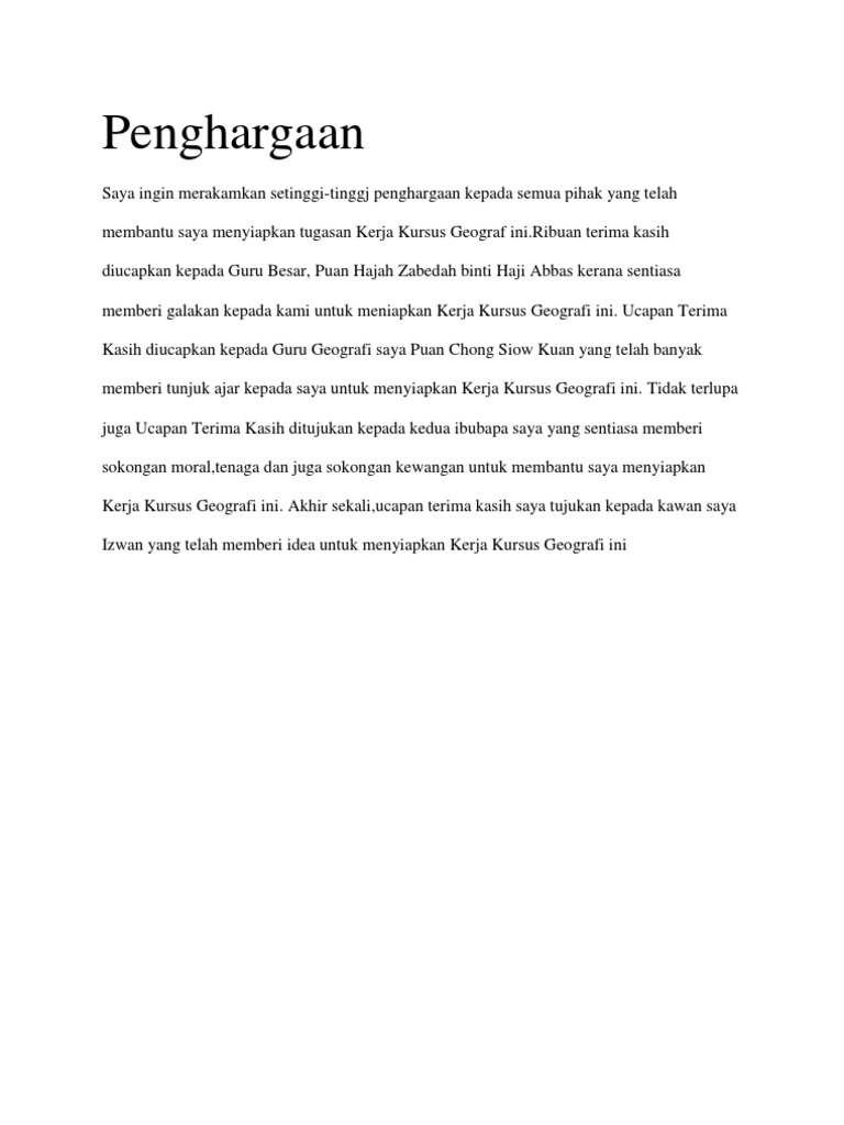 Contoh Kerja Kursus Geografi Penggal 3