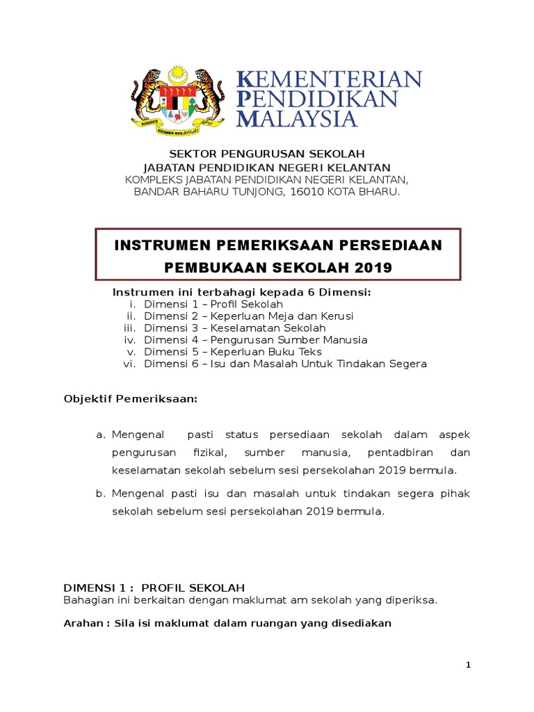 Instrumen Pemeriksaan Persediaan Pembukaan Sekolah 2019