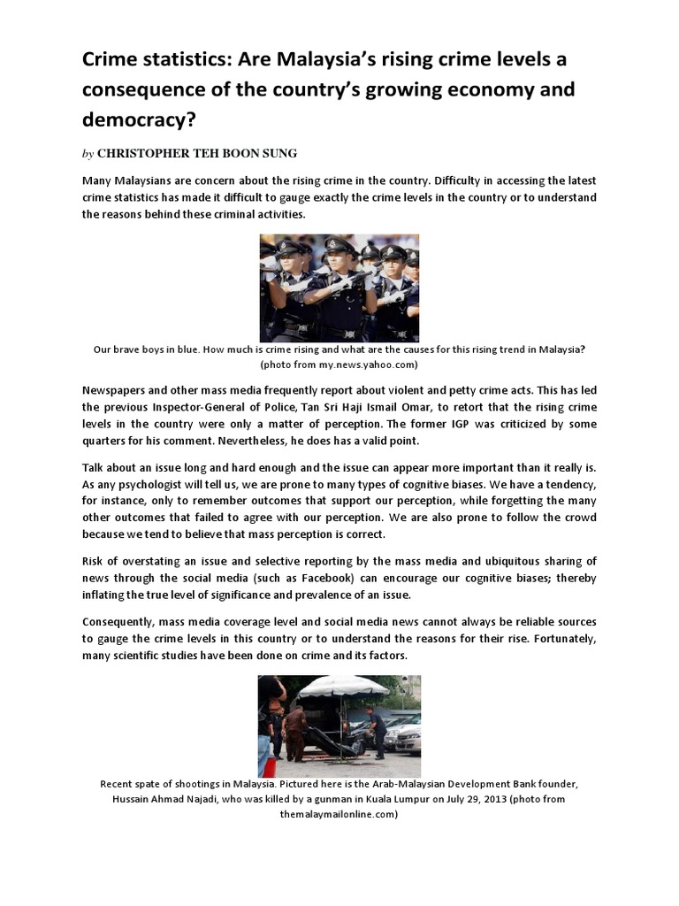 Crime Statistics Are Malaysia S Rising Crime Levels A Consequence Of The Country S Growing Economy And Democracy Gini Coefficient Economic Inequality
