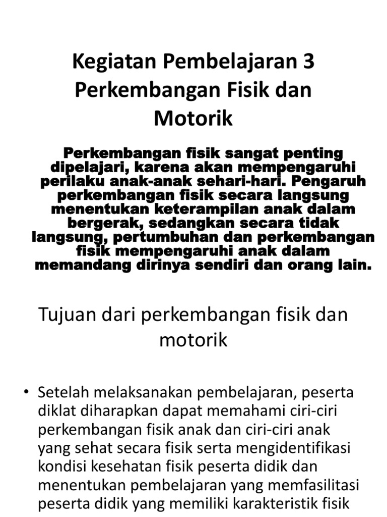 Kegiatan Pembelajaran 3 Perkembangan Fisik Dan Motorik