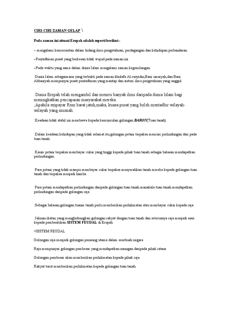 F6 tumpuan dalam bidang pertanian. Ciri ciri zaman gelap politik ekonomi dan sosial persamaan zaman gelap dengan masyarakat feudal melayu cara menghidari berlakunya kemunduran negara masyarakat. Pedagang dan ahli perbankan. A maksud zaman gelap.
