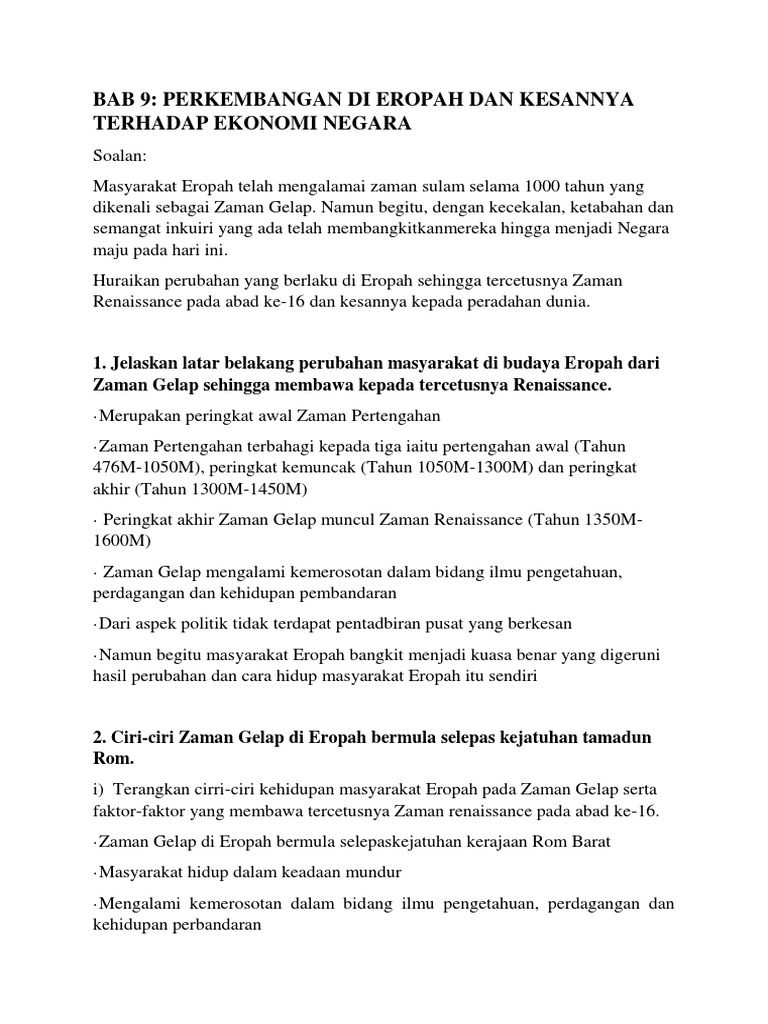 Ciri ciri renaissance penjelahan ke seberang laut kelahiran pelayar. Latar belakang eropah zaman gelap iaitu zaman tetutup dari sudut ekonomi politik dan sosial serta pemikiran yang dikuasai oleh pihak gereja. Zaman renaisans adalah zaman kelahiran kembali renaissance bahasa perancis kebudayaan yunani romawi di eropa pada abad ke 15 dan ke 16 m. Ciri ciri masyarakat berbilang kaum di tanah melayu 1 dakwah islam di makkah 1 dasar kebudayaan kebangsaan 1.