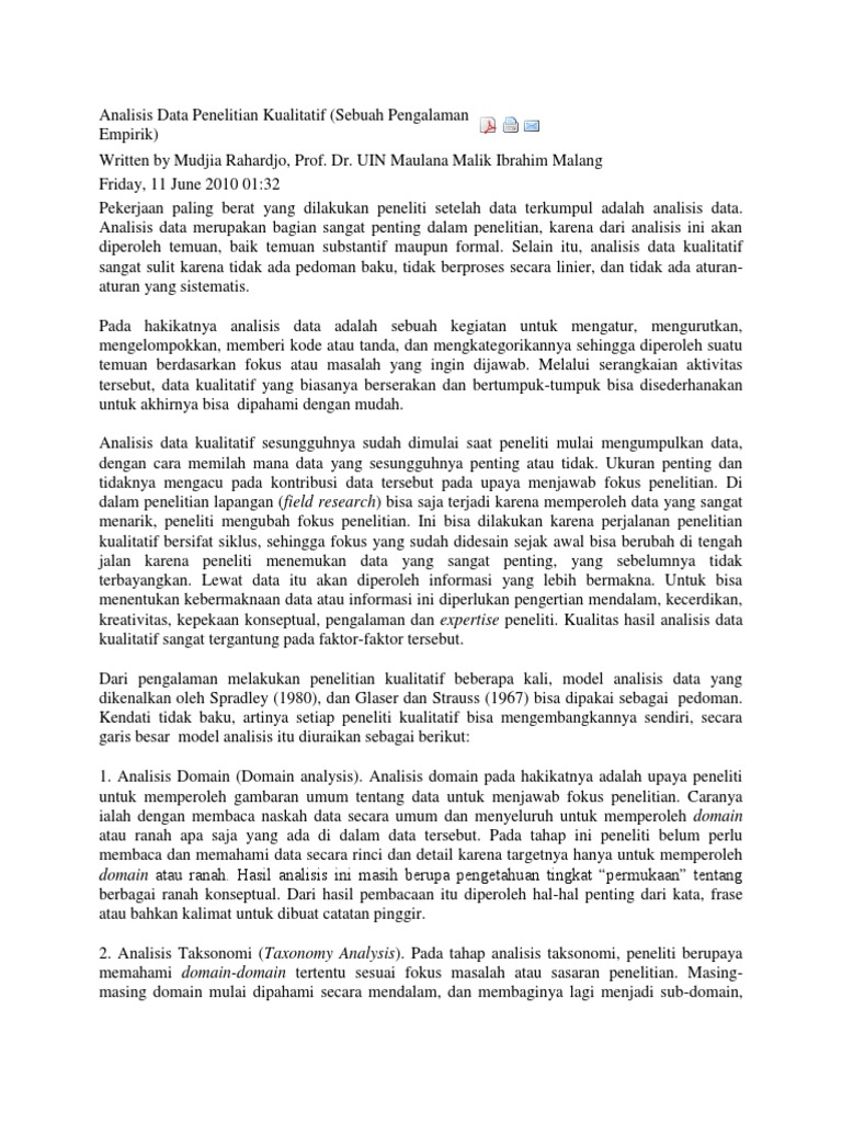 Pdf Analisis Data Dalam Penelitian Kualitatif