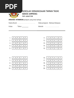 Borang Jawapan Objektif Omr Kh Pdf Document