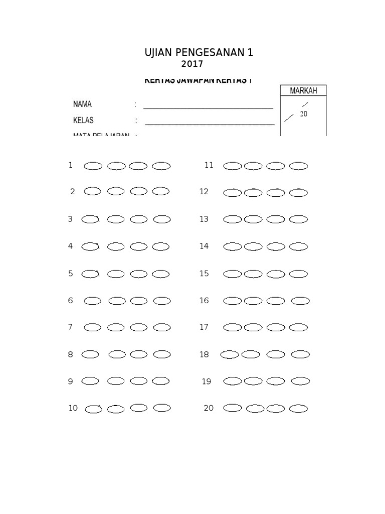 Kertas Jawapan Objektif 20 Soalan Cikgu Ayu Dot My