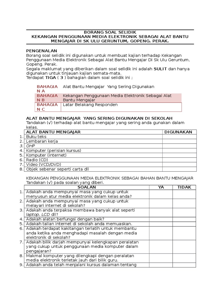 Contoh Borang Soal Selidik 2020 Banyak Contoh
