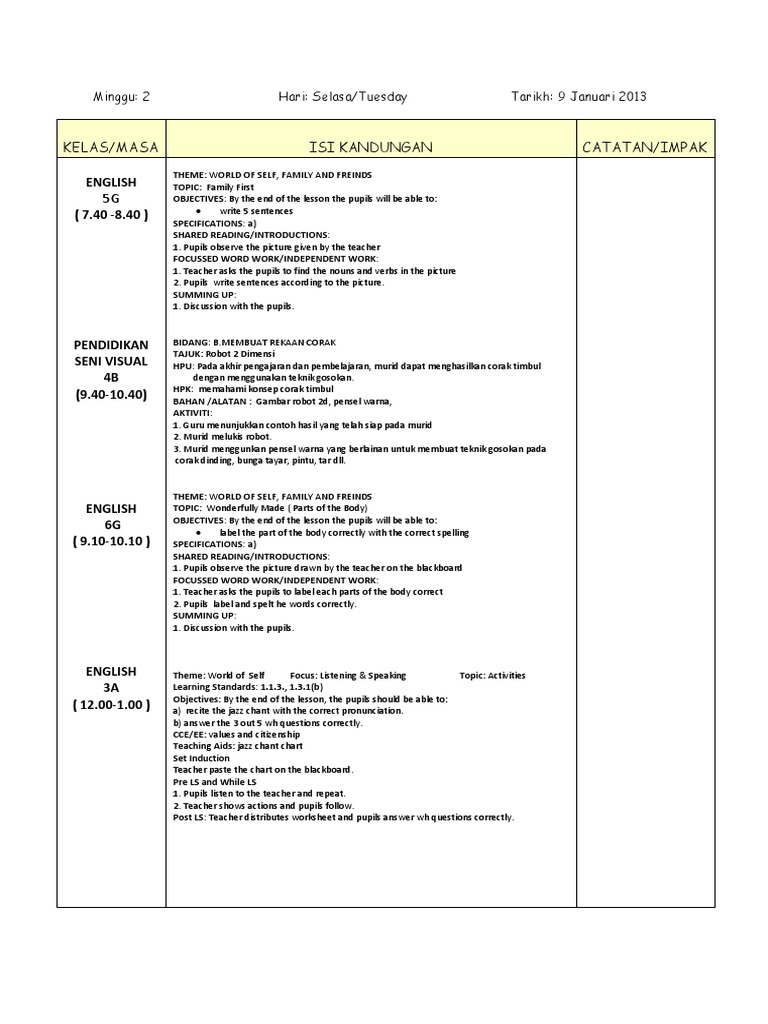Lesson Plan 2013 Week 1 English Language Lesson Plan