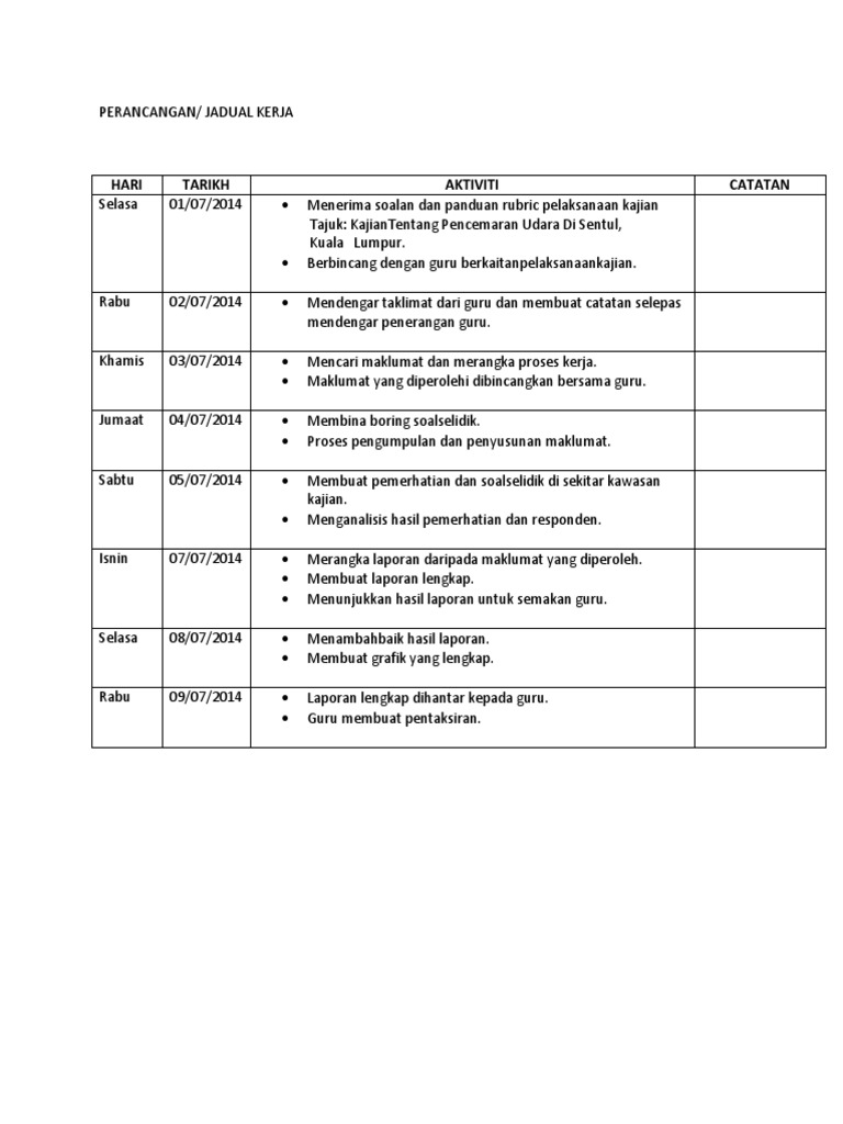 Contoh Jadual Kerja Lapangan Hrasmi