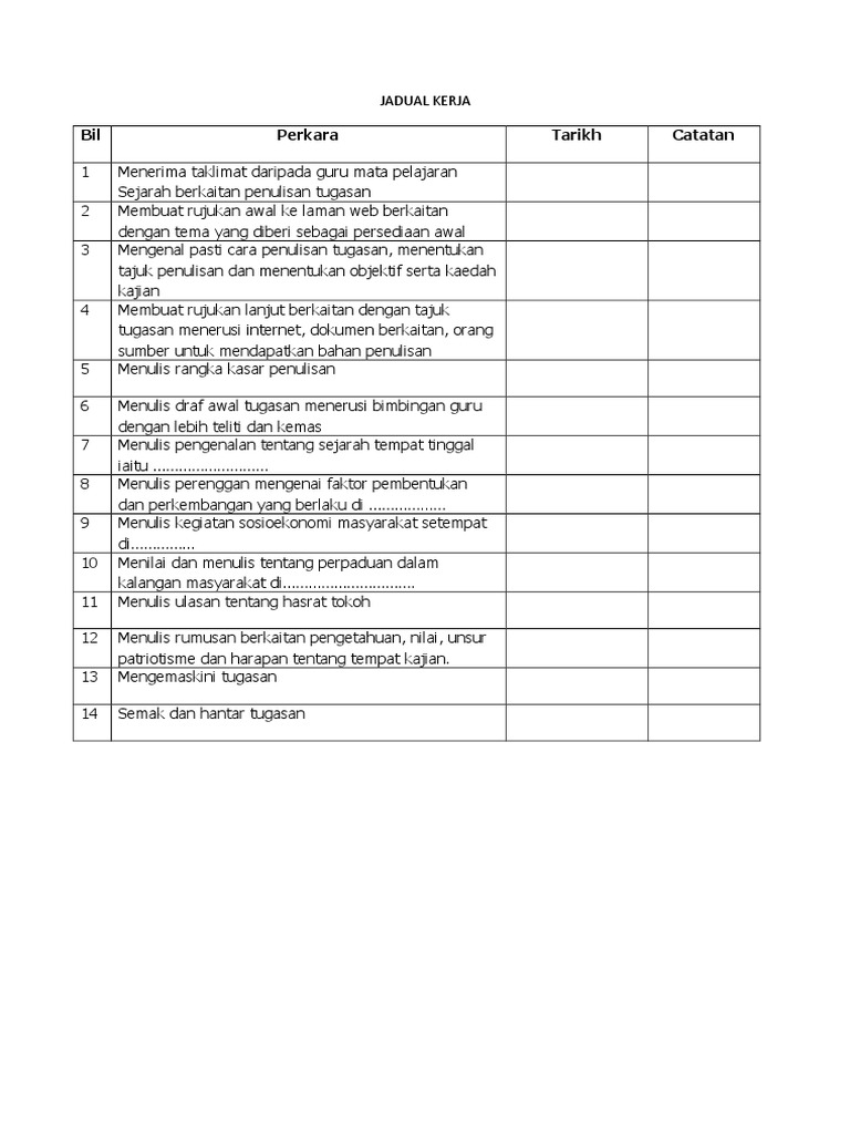Contoh Membuat Jadual Kerja Sejarah Rasmi J