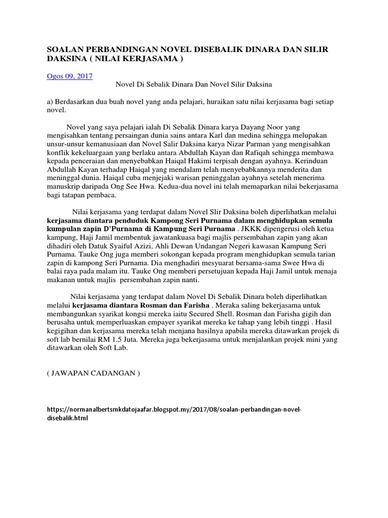 Soalan Perbandingan Novel Disebalik Dinara Dan Silir Daksina