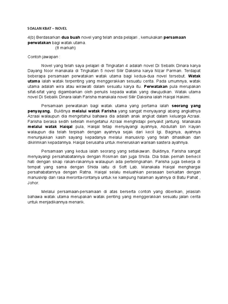 Contoh Jawaban Soalan Novel Spm Berdasarkan Soalan Spm 2001 2010