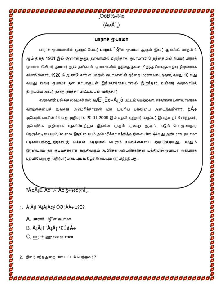 Contoh Karangan Bahasa Tamil