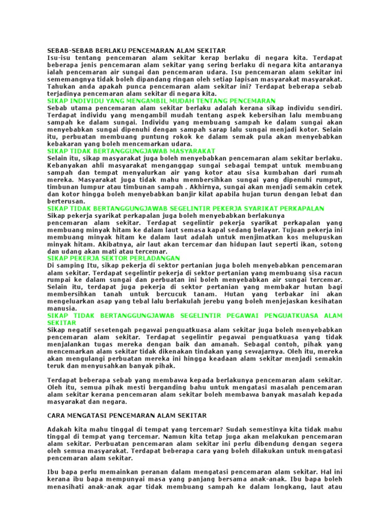Contoh Karangan Berkaitan Pencemaran Alam Docx Contoh Karangan Berkaitan Pencemaran Alam Contoh Karangan 1 Faktor Pencemaran Alam Sekitar Dan Langkah Course Hero