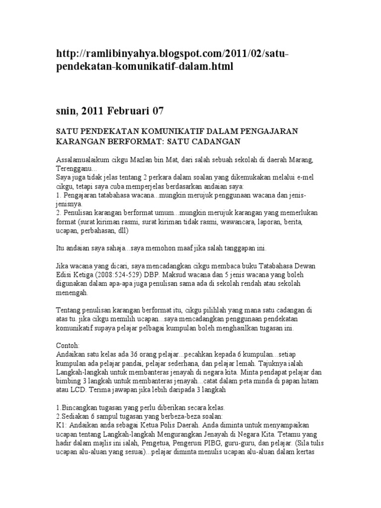 Nota E Mel Karangan Panjang Selamat Datang Ke Teratak Unit Bahasa Melayu Sekolah Menengah Sembawang