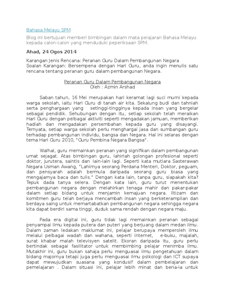 Info Pendidikan Contoh Contoh Karangan Spm