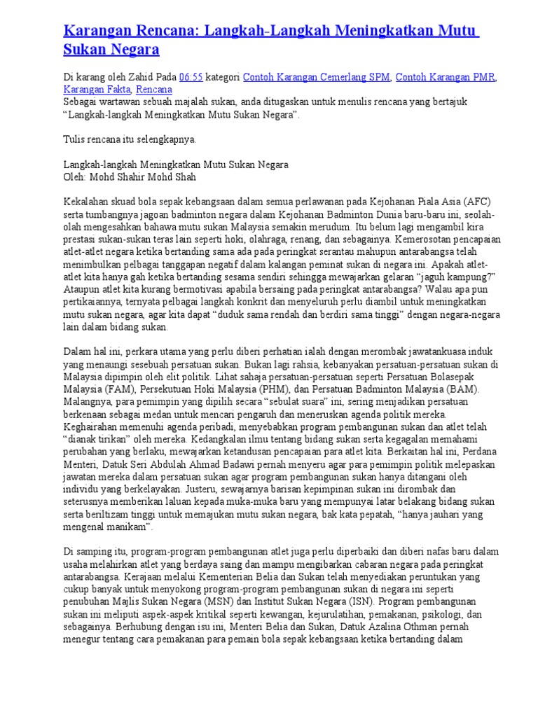 Contoh Rencana Bahasa Melayu Spm