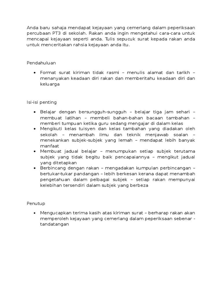 Surat Tidak Rasmi Pt3 Contoh Format Kiriman Karangan