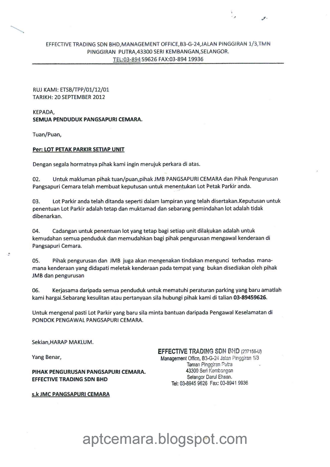Contoh Karangan Surat Kiriman Tidak Rasmi Tentang Keselamatan Di Pangsapuri