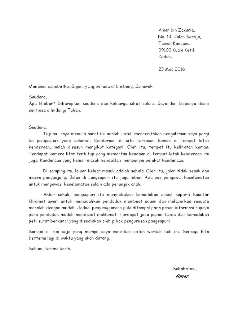 Format Surat Kiriman Tidak Rasmi Tahun 5