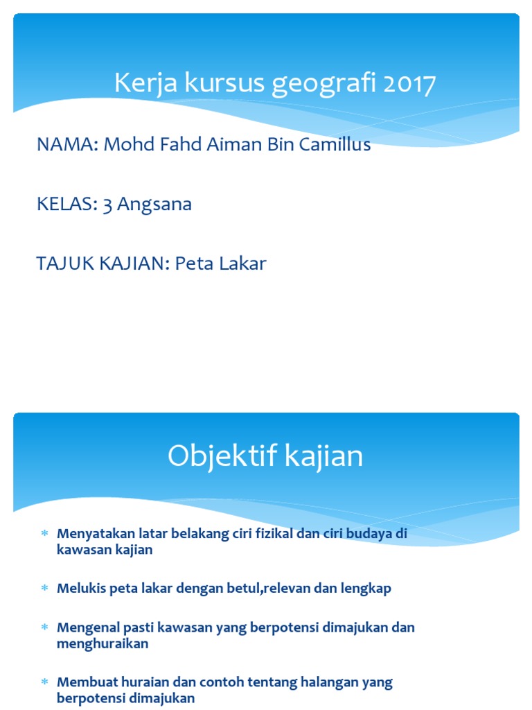 Contoh kerja kursus geografi pt3 2017 untuk buat folio tugasan geografi pt3 tingkatan 3 sistem pengangkutan di malaysia terbaik dan berkualiti. Tajuk kajian kes taburan guna tanah yang berasaskan kepada lukisan peta lakar atau peta topografi di kawasan pilihan anda.