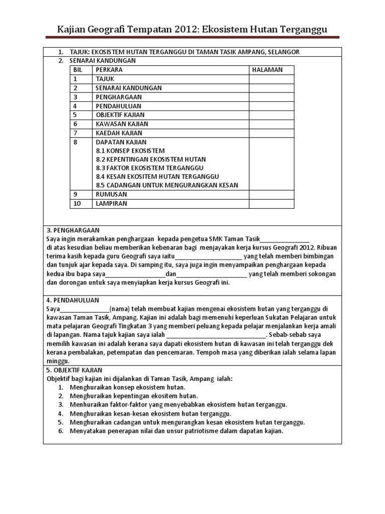 Contoh Kerja Kursus Geografi Stpm Hutan