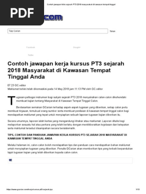 Carian maklumat cara buat folio sejarah pt3 2018 tajuk tugasan masyarakat di kawasan tempat tinggal anda. 3 1 contoh jawapan tugasan sejarah pt3 2018. Contoh jawapan kerja kursus pt3 sejarah 2018 masyarakat di kawasan tempat tinggal anda. Panduan membuat kerja kursus sejarah pt3 2019 umum sedia maklum yang pelajar tingkatan 3 tahun 2019 adalah dikehendaki untuk menyiapkan tugasan kurikulum standard sekolah menengah kssm sejarah tingkatan 3 tst3.